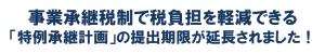 事業承継税制で税負担を軽減できる 「特例承継計画」の提出期限が延長されました!